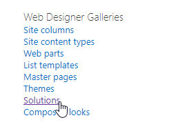 Note: if you can’t see Solutions here, make sure you are not trying to add the template to a subsite.