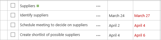 Note: You can also click Alt+Shift+Down on your keyboard to move items down. - Select each item under the new ‘Suppliers’ task and click Tasks | Indent.