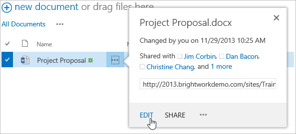 The document will open in the appropriate Microsoft Office client. Make some changes, and save and close the document.