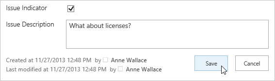 - Select the Issue Indicator checkbox, enter an Issue Description and click Save.