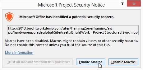 You will need to have your own Training Project Office created with your own versions of the BrightWork training templates. For more information, please see the Create a BrightWork Training Project Office guide in the Introductory Guide.