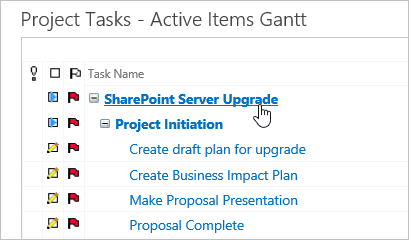 Click Project Home and click Work Gantt on the tabs. This report shows all the work items in the project.