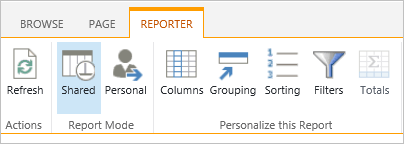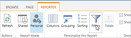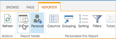 It is very important to remember that the personal report is the report that will load first whenever you visit the page. There will be no indication of this when you land on the page. The only way to tell if a report is actually a Personal one, is to expose the Reporter Tools ribbon.