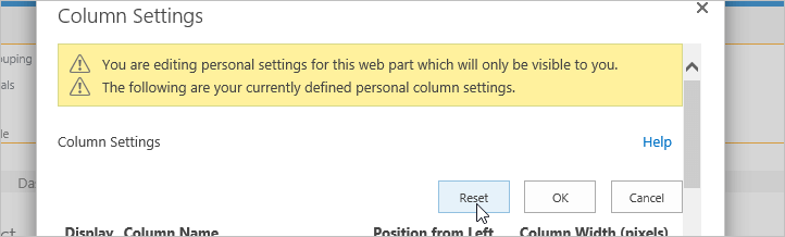 - Click the Reset button.Click OK to confirm and the report will now default back to the Shared version.