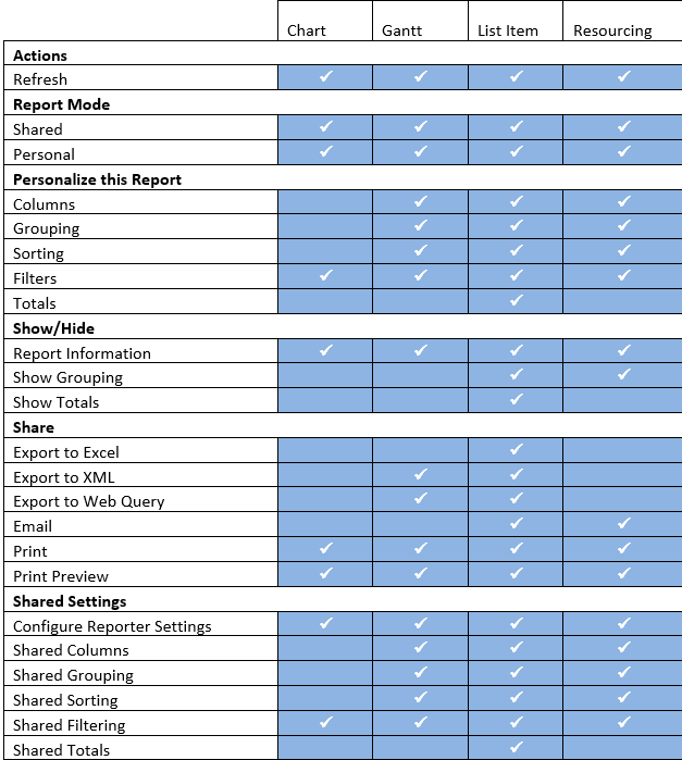 Reporter Tools Sharing and Configuration Options