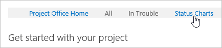 Note how there are multiple projects on the Project Summaries Gantt. Some are from the Projects Tracker list that is built into the Project Office itself, and the others are from the project sites you created in the previous exercises. - Click Status Charts on the Tabs bar.