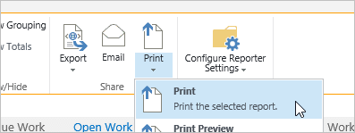 - Click the Print button in the Share section of the Reporter Tools ribbon.